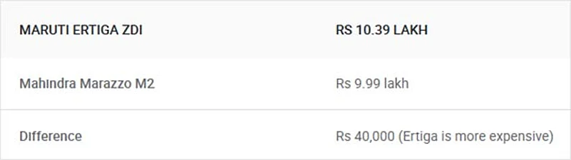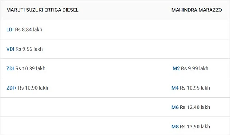Maruti Ertiga ZDI vs Mahindra Marazzo M2