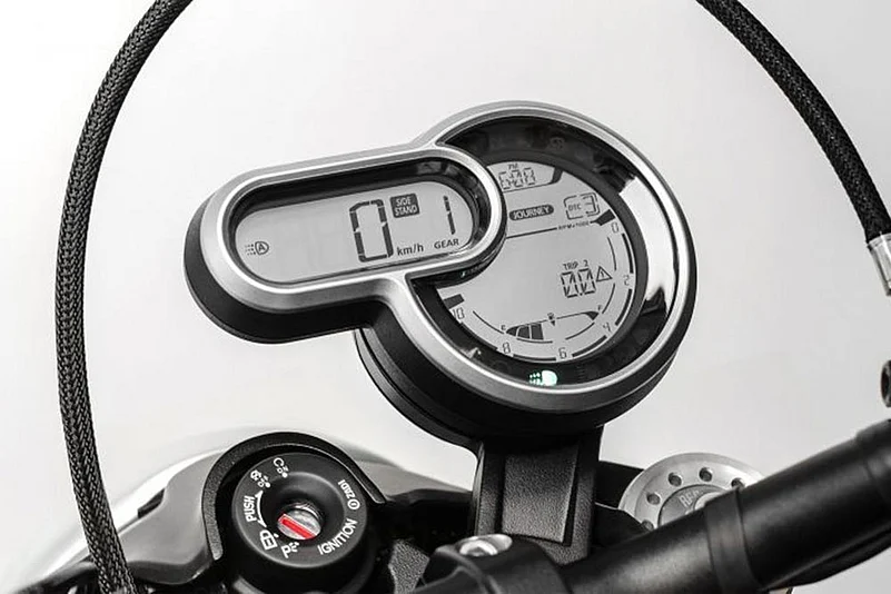 The Scrambler 1100’s silhouette is more or less similar to the 800cc one, except for the exhaust placement. The newer Scrambler features a redesigned headlamp, with an X-shaped metal inset, surrounded by LED DRLs. Just like the smaller bike, this one also features an offset-mounted LCD instrument cluster. But this time around, Ducati has used a twin-pod asymmetric unit inspired by the Scramblers of the 70’s. The smaller pod displays important information like speed, gear position, side stand and the likes, while the rest of the info including tachometer, are displayed in the larger pod. For better ergonomics, the handlebar is also beefier and gets adjustable hydraulic clutch and brake levers.