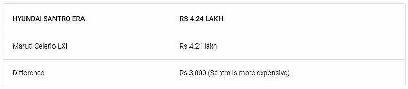 Hyundai Santro Magna vs Maruti Celerio VXI