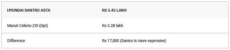Hyundai Santro Asta vs Maruti Celerio ZXI (Opt)