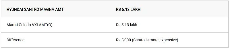 Hyundai Santro Magna AMT vs Maruti Celerio VXI AMT(O)