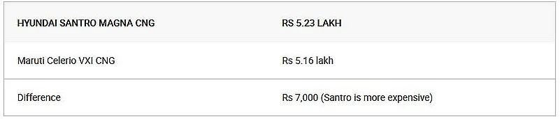 Hyundai Santro Magna CNG vs Maruti Celerio VXI CNG