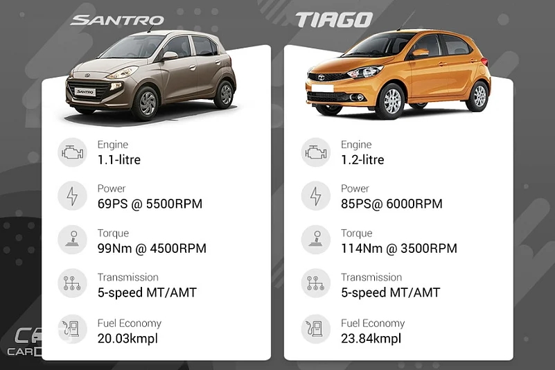 Hyundai has launched the Santro, in a new avatar, after a three-year hiatus in India. The hatchback is priced in the Rs 3.90 lakh-Rs 5.46 lakh (ex-showroom India) price bracket. This particular price range has a lot of other options, and one of them is the popular Tata Tiago. To make things simpler, we pit select variants of the Hyundai Santro against those of the Tata Tiago to find out which offers more bang for your buck.