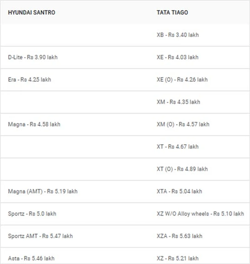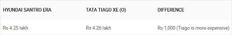 Hyundai Santro Era vs Tata Tiago XE (O)