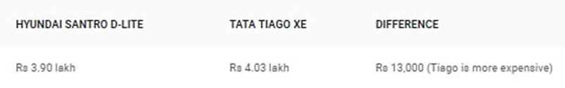 Hyundai Santro D-Lite vs Tata Tiago XE