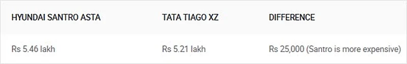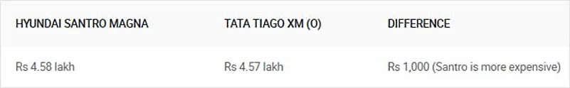 Hyundai Santro Magna vs Tata Tiago XM (O)