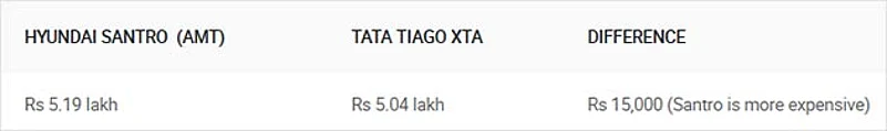 Hyundai Santro Magna (AMT) vs Tata Tiago XTA
