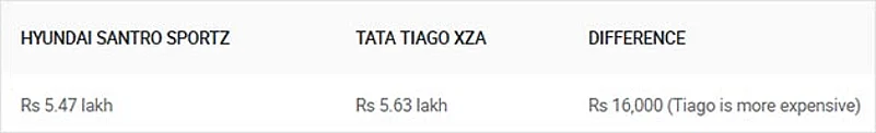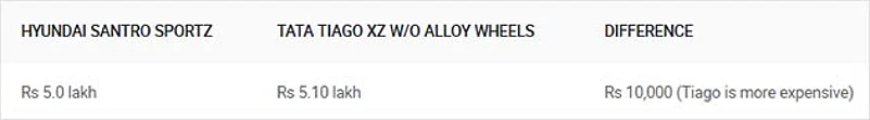 Hyundai Santro Sportz vs Tata Tiago XZ (W/O Alloy Wheels)