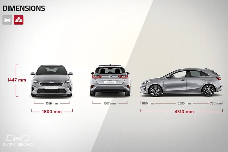 The Kia Ceed is a big hatchback. Now in its third generation, the Ceed is 4310mm long and 1800mm wide. To put things into perspective, the Maruti Suzuki S-Cross measures 4300mm in length (10mm less than the Ceed) and 1785mm in width (15mm narrower than the Ceed). But at 1595mm, the S-Cross is about 150mm (15cm) taller than the Ceed hatchback, which measures 1447mm.