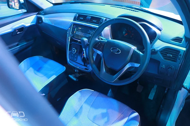 The eKUV100 looks largely similar to the standard KUV100 save for some minor changes. The eKUV100 features a large plastic panel in place of the large air dam seen on the regular hatchback. It also gets a fully enclosed six-slat grille and projector headlamps, both which also feature blue highlights. From the side, the only distinguishing element between the electric version and the regular hatchback are the ‘+ME’ badging on the front fender. The rear, on the other hand, gets a grey colour applique on the tailgate while the tailpipe has been omitted (obviously!). The interiors look identical to that of the standard KUV100.
