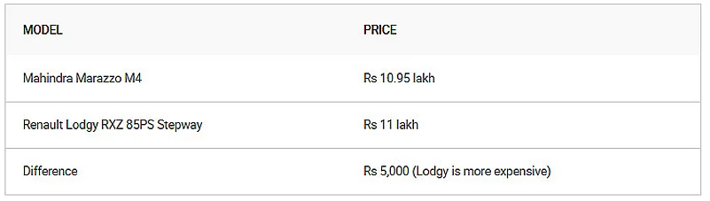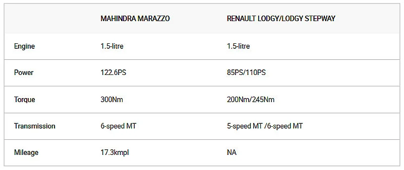 Mahindra Marazzo M4 vs Renault Lodgy RXZ 85PS Stepway: