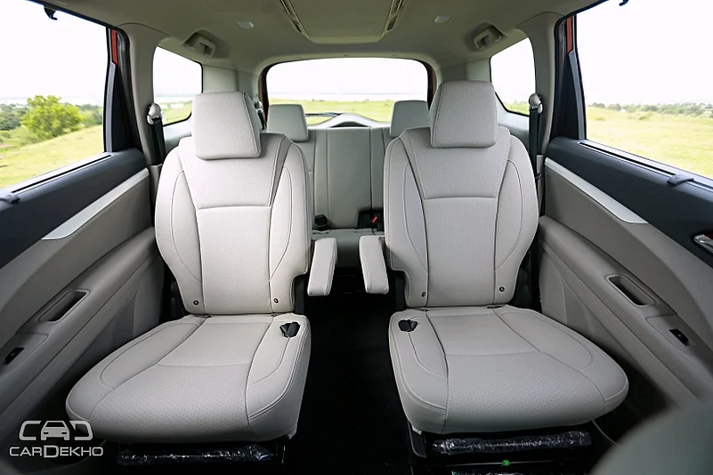 The Marazzo trumps the Innova Crysta when if comes to space at the front. Even six-footers won’t find any shortage of space in terms of legroom or kneeroom. However, the Toyota scores better when it comes to underthigh support. So while the Mahindra’s front-row will let you stretch out more, the Innova’s seats are likely to be more comfortable on longer journeys.