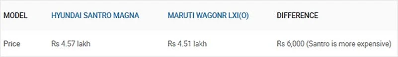 Hyundai Santro Magna vs Maruti WagonR LXI(O)