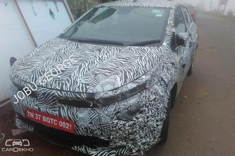 Based on the ALFA-ARC architecture, the Tata 45X is expected to be a sub-4m vehicle unlike the concept model. While the hatchback, codenamed 45X, is properly camouflaged, we can see the IMPACT 2.0 honeycomb mesh grille and side-swept headlamps, similar to the concept. Also visible are the fog lamps, which are placed very close to the headlamps.