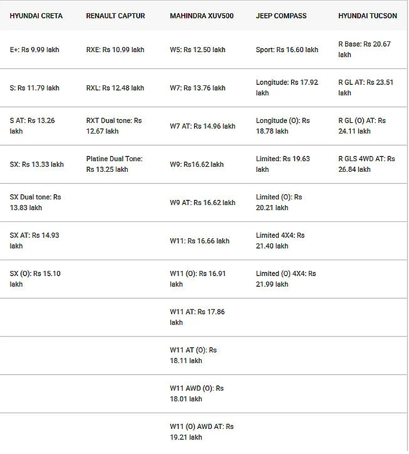 Now, let’s take a quick look at what the Harrier’s competitors equipped with diesel engines are priced at.