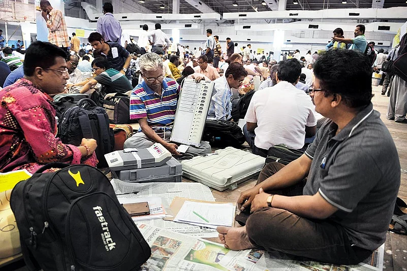 The only way to access the number of votes stored in each EVM is to break open the seal which keeps each EVM secure. The seal can only be broken by an Election Commission official in the presence of representatives of all the candidates—and with all parties looking on, hawk-eyed. If any EVM’s seal is found already broken, the Election Commission announces repolling in the relevant polling booths. In any case, it is virtually impossible to secretly break the seal of any EVM, as every move an EVM makes, from being set up in a polling station on voting day, through to being transported at the end of voting into a locked room, and then to finally being moved to the counting centre only on counting day, is watched and the process guarded by representatives of all parties.