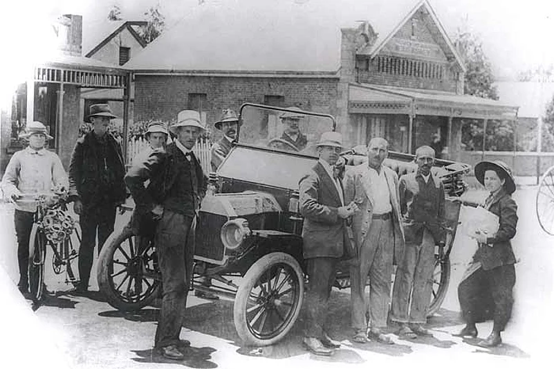 M.K. Gandhi was no prim pope of non-violence: in front of his Johannesburg office with secretary Sonja, editor and friend Henry Polak and others, 1906.( Photographs Courtesy: National Gandhi Museum)