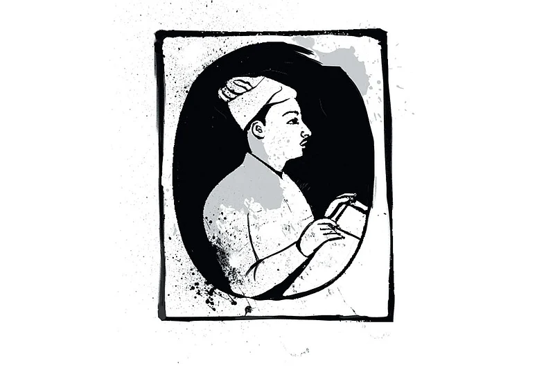 In London’s Victoria & Albert Museum, which holds around a dozen of Nainsukh’s works, there’s a striking painting of Balwant Singh being entertained by a group of musicians and players. As the prince smokes a hookah, one performer mimics him, pretending to drag from a long paper scroll. Come closer, though, and look at the lead singer with a magnifying glass. This thin man in a neat white and orange turban has tiny scars on his face—marks from smallpox, one of the leading causes of death in the 18th century.