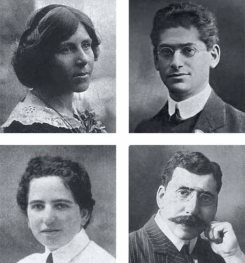 Clockwise: The combative Millie Polak; her husband Henry Polak; Hermann Kallenbach who wrote a biography of Gandhi; his secretary Sonja Schlesin