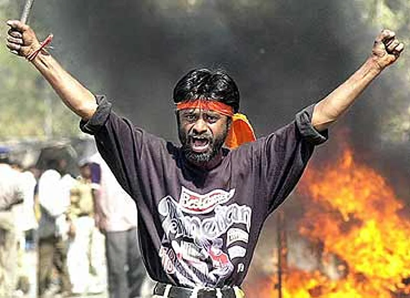 That Indians spoke many languages and followed many faiths made their nation unnatural in the eyes of some Western observers, both lay and academic. In truth, many Indians thought so too. A popular slogan of the original Jana Sangh was 'Hindi, Hindu, Hindustani'. The attempt was to make Indian nationalism more natural, by making—or persuading—all Indians to speak the same language and worship the same gods. In time, the bid to impose a uniform language was dropped. But the desire to impose the will of the majority religion persisted. This has led to much conflict, violence, rioting and deaths. Particularly after the Gujarat riots of 2002, which were condoned and to some extent even approved by the Central government, fears were expressed about the survival of a secular and democratic India. Thus, in a lecture delivered in the university town of Aligarh, the writer Arundhati Roy went so far as to characterise theBJP regime as 'fascist'. In fact, she used the term 'fascism' 11 times in a single paragraph while describing the actions of the government in New Delhi.