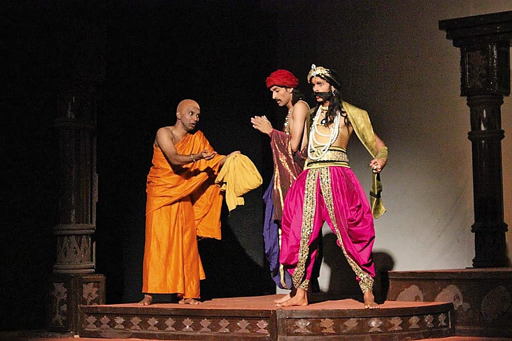 Samsthanaka, the corrupt king’s vile brother-in-law, is besotted with Vasantasena, the city’s most exquisite courtesan. She is in love with Charudatta, a married Brahmin who has fallen on hard times because of his reckless generosity. Vasantasena surreptitiously leaves her jewels in Charudatta’s house, from where they are stolen by a master thief, Sharvilaka, who uses them to buy the freedom of his beloved Madanika, who works as Vasantasena’s maid. In the background, Aryaka, a shepherd revolutionary escapes from jail with the help of Sharvilaka and sets about gathering the marginalised around him as he prepares to overthrow the king. The two stories come together when Aryaka and Vasantasena end up in a pleasure garden outside the city. Here, Samsthanaka throttles Vasantasena in a fit of pique and jealousy and accuses Charudatta (who was waiting in the same garden to meet Vasantasena) of killing her for her money. Charudatta is arrested and sentenced to death. Vasantasena, who was merely unconscious, rushes to save Charudatta. Charudatta walks away a free man, with both his wife and his mistress. It’s likely, as Rajappa reminds us in her introduction, that our playwright, Shudraka, added the Aryaka story onto a play that already existed, perhaps one called ‘Charudatta’, by none other than Bhasa.