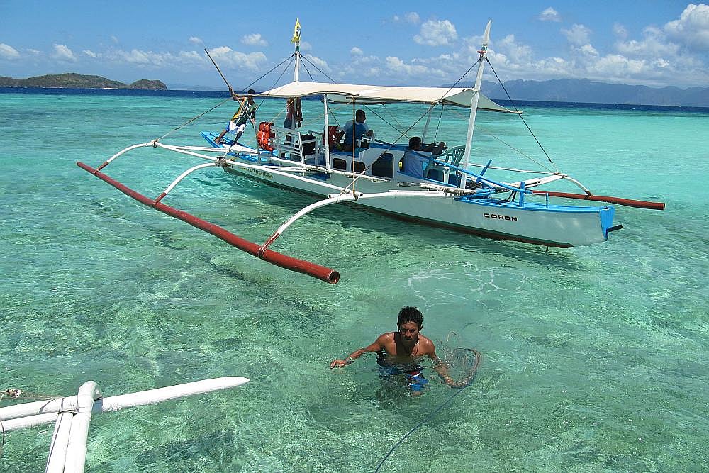 When I first visited Palawan, the north-south highway was a deeply rutted dirt road, and rather than bumping along, squeezed knee-to-knee inside a jeepney, it was more comfortable to shoot the breeze and admire the views sitting on the roof. In fact, it was much easier to get around those days by boat. In Puerto Princessa I met Mark, a German expat married to a Filipina. Mark had just converted a fishing boat into a live-aboard called the Moonshadow, and was offering a ten-day cruise up the east coast of Palawan. I joined one of them with my friend, Ali Azimi, an Afghan American, with his wife Khaleda and their two children.