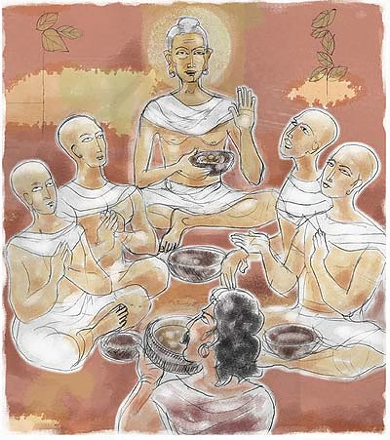 Pasenadi, according to the references that Batchelor so painstakingly culled from the Pali Canon, was a paranoid tyrant given to impaling his enemies—imagined or real—on stakes. His friendship with the Buddha, which lasted for the next 25 years, seems to have had little effect on Pasenadi. “The only time he is seen to benefit from Gotama’s instruction is when he follows his advice to go on a diet,” writes Batchelor. From “a bucket measure of boiled rice” he reduces his intake to “a pint-pot measure” and becomes “quite slim”.