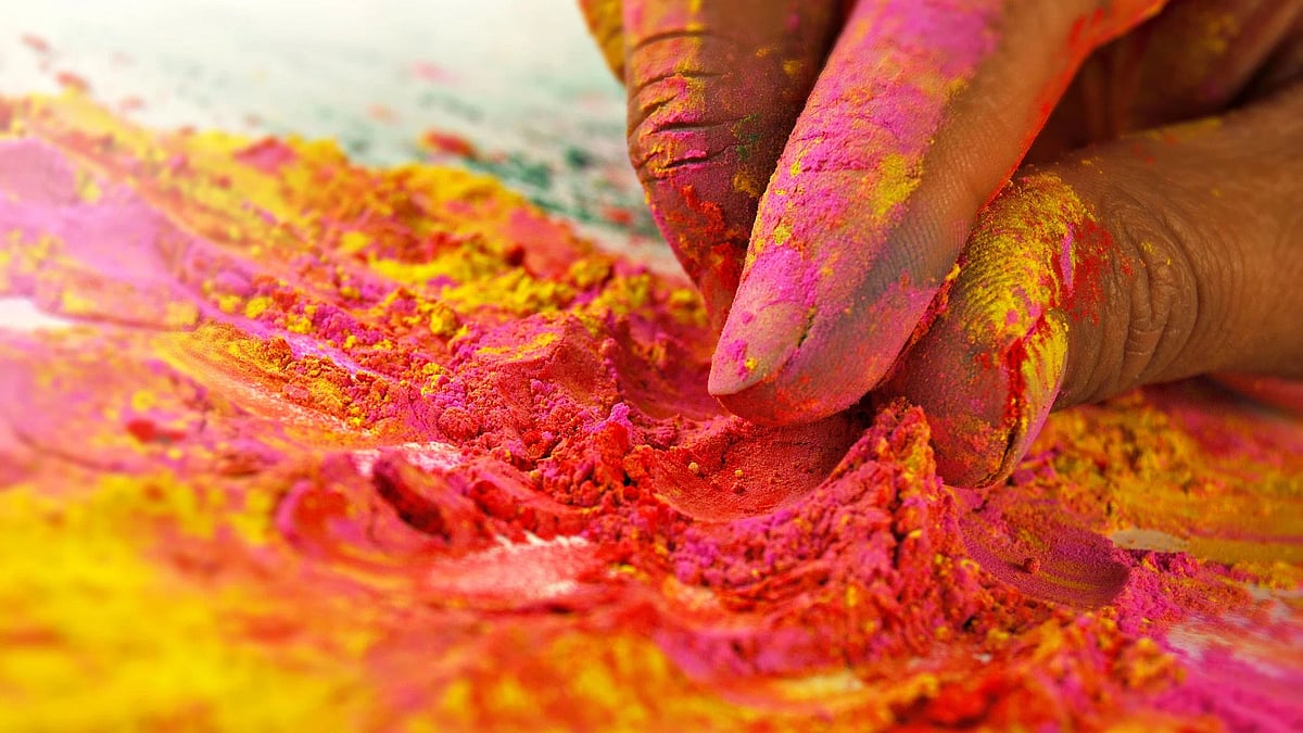 In India, Holi is a big, colorful celebration that everyone waits for eagerly. During this festival, people of all ages come together to splash vibrant hues on each other, laughing and dancing to the beat of drums. It's a time when streets and homes are filled with laughter, as friends and family smear each other with colors of red, blue, yellow, and green. They also enjoy delicious sweets and special foods made for this occasion. Holi is a time when everyone, no matter who they are, joins in the fun and celebrates the arrival of spring with lots of color and happiness.