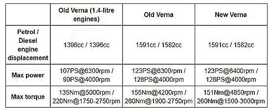 The new Verna gets two engine options - a 1.6-litre petrol and a 1.6-litre diesel. The petrol engine makes 123PS of power at 6400rpm and 151Nm of torque at 4850rpm, while the diesel engine produces 128PS of power at 4000rpm and 260Nm of torque from 1500rpm all the way up to 3000rpm. Both engines are mated to a 6-speed manual gearbox. Fuel-efficiency figures come in at 17.70kmpl for the petrol MT (earlier 17.01kmpl) and 15.92kmpl for the petrol AT (earlier 15.74kmpl), while the diesel delivers 24.75kmpl and 21.02kmpl for the MT and AT respectively (earlier 21.9kmpl and 19.08kmpl respectively).