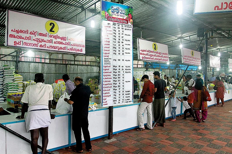 Like a utopian dream, Kizhakkambalam village also seems insulated from inflationary food prices and other market vagaries the rest of the country is subjected to. Fixed quantities of rice, vegetables, oil, pulses are available to each Twenty20 card-holding householder at subsidised rates. (India may reeling under the price rise of pulses but here in this market a 2-kg dal kit which contains four different varieties of pulses is available at Rs 90. Every family is entitled to 4 kg, likewise a 6 kg vegetable kit is available for Rs 100.)