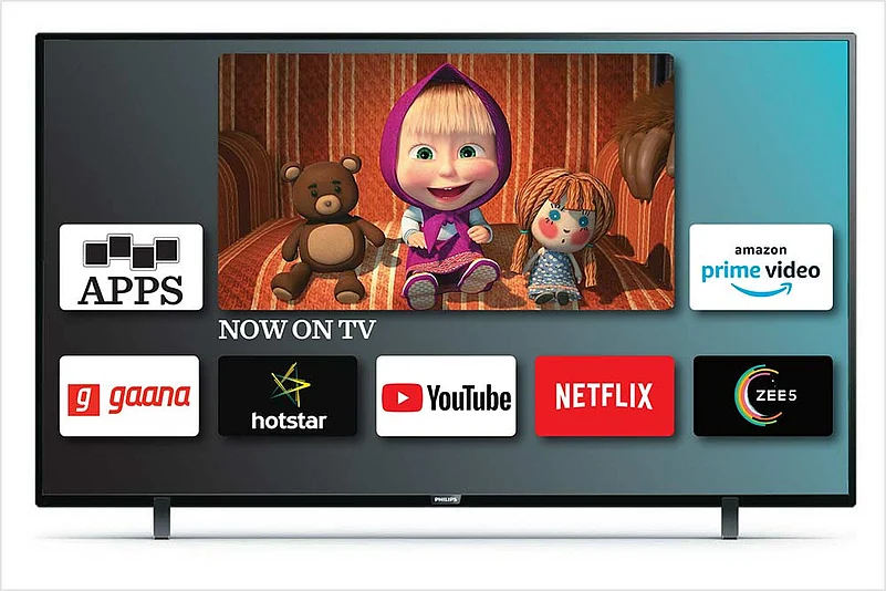 The TV, as a few generations knew it, is passé. In its new avatar, it’s broadcast, OTT, Wikipedia and e-shopping all rolled into one—a screen that knows its only job is to entertain you. Scrolling through channels is down and out; Netflix-inspired menus are in, trailers popping out as you pass by. Even when you hit the pause button for a few minutes, there’s plenty to keep the rest of the family glued till you return. Trivia, for one—who was that little kid in the TV commercial; filmographies; hey, what was that cool outfit Anushka Sharma was wearing in the scene just paused. Voila! A link to a shopping app to explore similar designs.