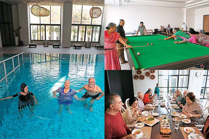 On a balmy Saturday afternoon, the clubhouse of Antara in Dehradun reverberates with boisterous chatter and laughter. The elderly crowd is enjoying a cheat day—they can eat and drink whatever they like. On the horizon, verdure cloaks the foothills of the Himalayas. Birdsong and the chirping of crickets suffuse the air. Antara, the property’s website declares, is “a beautifully designed community for the progressive few who believe age is just a number.” Many Indian elderly citizens abide by this dictum and consider the term ‘old-age home’ passe. For them, the correct appellation would be senior living homes.