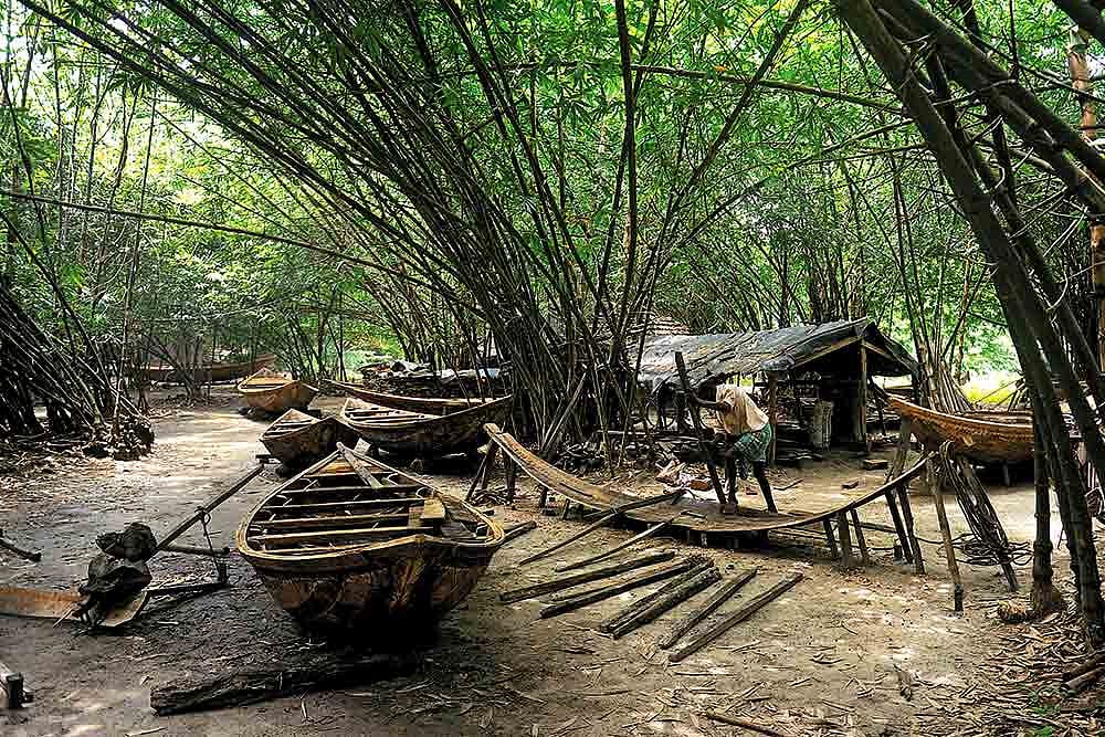 The staccato thump of the hammer breaks the springtime silence of a bamboo grove by a languid, humid Hooghly—in Balagarh, about 75 klicks from Calcutta. Streaks of sun pierce through the foliage and light up a row of boats. Some on stilts await the varnish; some are just wooden ribcages like the one 65-year-old craftsman Sheikh Ashraf Ali is hunched over. Ali’s craft is afloat and awash with history, but the centuries-old tradition of making wooden boats could soon die out as the demand for such vessels is disappearing rapidly. Balagarh’s Shreepur Bazaar, the boat-making hub of Bengal, is a timeless island amidst strong currents of change. “We are struck in a trade possibly at its last leg,” laments Ali, the mistry or the master boatwright.