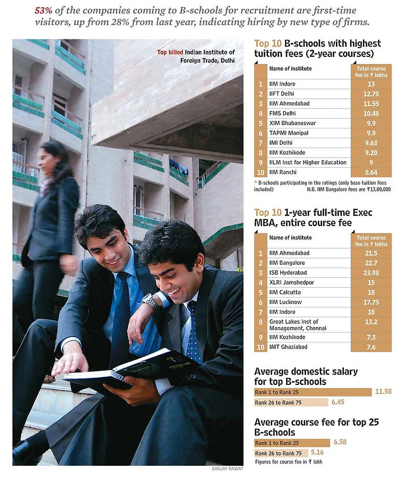 Outlook’s annual ranking of top business schools (conducted by Drshti Strategic Research Services) provides a peek into this economy. Reflecting the mood, the overall scoring is lower than previous years. While there is practically no change in the top 15, there is plenty of churn down below. The crucial question remains: will industries recruit? “Mixed signals emanate from the finance sector, in the throes of a continuing slowdown. For most others (except advertising and media), it seems to be business as usual,” says A.K. Balaji Prasad, Drshti’s managing director, who feels placements will be decent this year. But with rising pressure to innovate, life’s going to get only tougher for our B-schools.