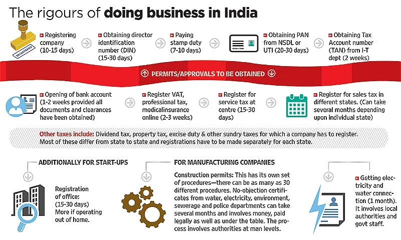 That, in short, is the story of people who try to set up a business in India or even try to run a business here. There is unanimity among businessmen that doing business in India is tough—not because of competition, but because it could take an eternity to wade through the maze of processes, get clearances and finally get started with a project.