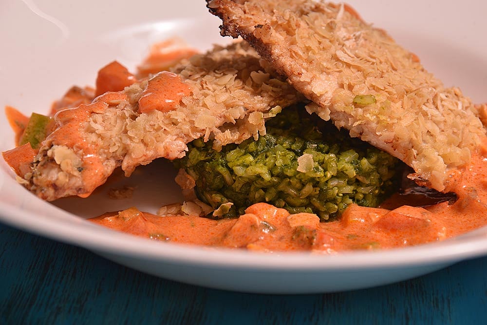 - Marinate the chicken in the above ingredients for 20 minutes and coat it in oats.