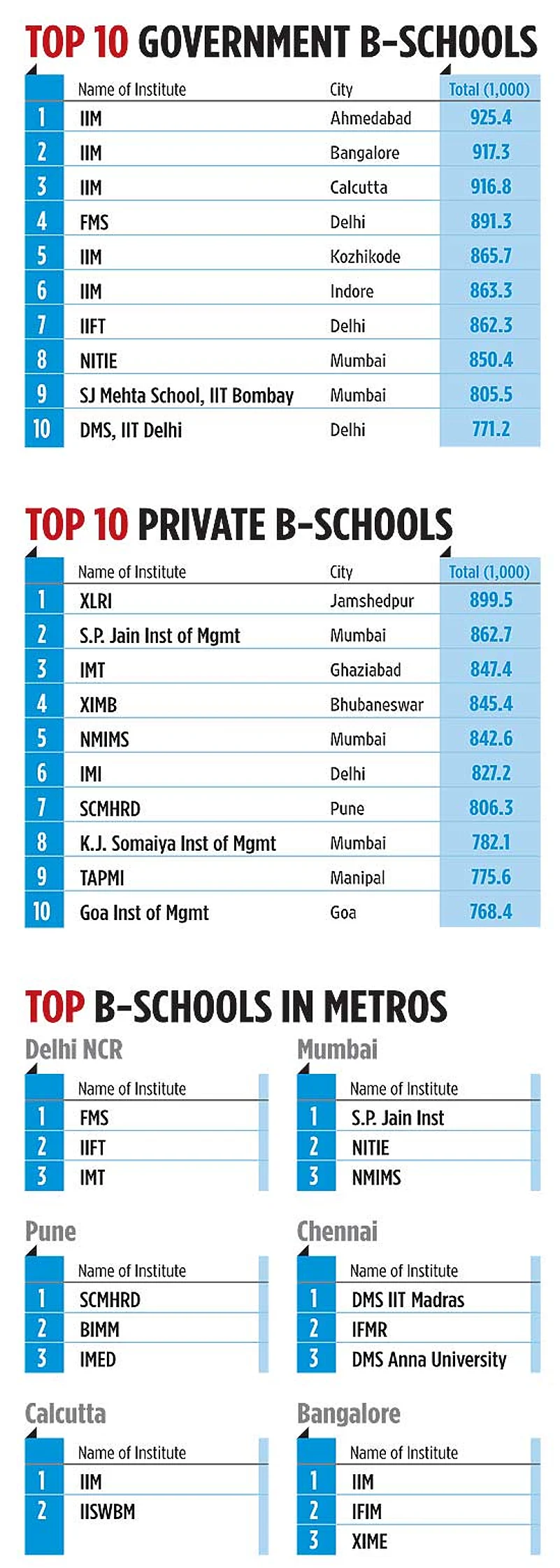 The second phase involved verification and audit of objective data provided by the B-schools. Initially, all information was carefully examined by checking through past data. Thereafter, 21 of the institutes were visited for physical audit of the data to verify their authenticity. Colleges that provided suspicious data were removed from the ranking exercise at that stage.