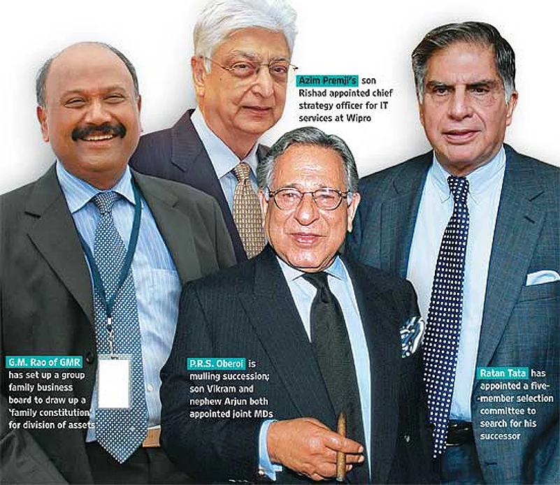 The biggest buzz has been reserved for the Tata group, which has appointed a five-member committee to look for a suitable successor for Ratan Tata. The committee plans to vet internal, external and candidates from global companies. Then, at the Godrej group, a family business board has been set up with a mix of family as well as independent directors. Similarly, business families like the Goenkas have chosen to define which family member will own the companies. Based on the basic rule of the thumb—who is currently managing which business—a realignment of holdings has been worked out. Several other groups like Bajaj, GMR and Leela Ventures have announced structures and measures to effect a clean break from the past.