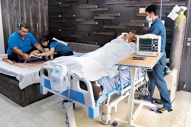 When S.P. Kamra (75) returned home from hospital after treatment for a stroke, his family members were worried. Completely bed-ridden in his Delhi home, Kamra needed constant and expert care. As his son, Praveen, looked for options, someone suggested home care services. From monitoring Kamra’s ventilator parameters, to maintaining an input-output chart for fluid balance, chest and limb physiotherapy, to changing his body position every hour, even providing psychological support, the expert attendants from the private service provider, Health Care at Home, did everything to nurse him back to health. And his son, Praveen, could not have been happier. “With the support and the treatment, my father’s health status has improved…he has been weaned off the ventilator and his vitals are within the normal level. His neurological conditions have improved too. With physiotherapy, his lower limbs have gained back strength,” Praveen tells Outlook. “Psychological support and counselling by the attendants (also) helped him get well faster”.