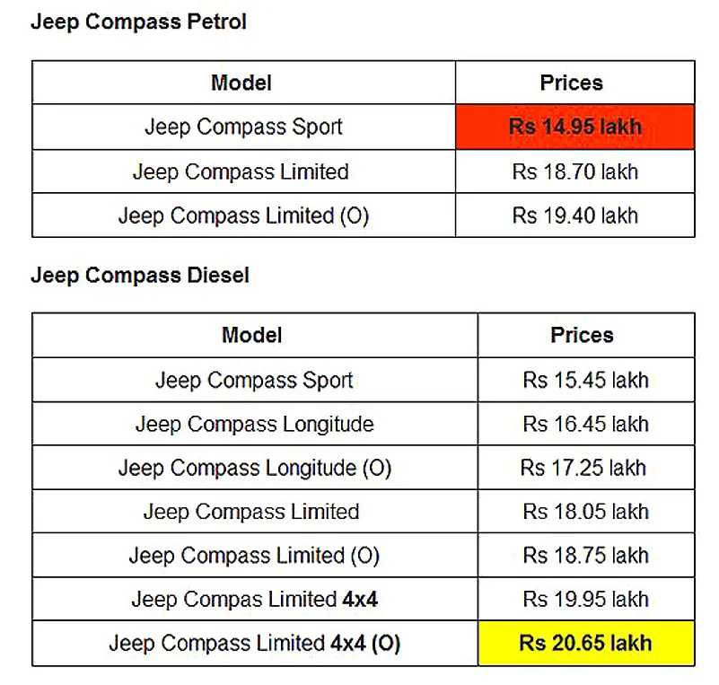 Price difference: the Compass petrol is roughly expensive by Rs 57,000