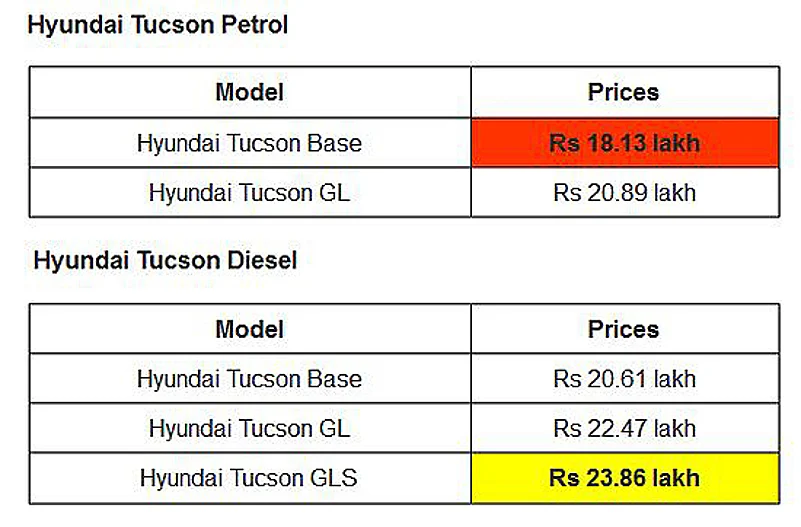 - Hyundai Tucson Base: 2.0-litre petrol – 155PS/192Nm; 6-speed manual