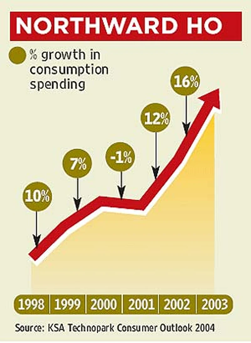 | Share (%) | Items | 1998-99 ($ BN) | 2003-04 ($ BN) | CAGR (%) |