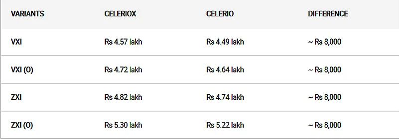 The Celerio is also available with the base LXI and LXI (O) variants, unlike the CelerioX. Hence, we have omitted these variants for the price comparison table. Overall, all the extra frills in the CelerioX attracts a premium of around Rs 8,000 compared to the corresponding variant of the regular model.
