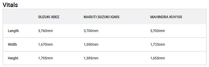 Dimensionally, the Suzuki XBee is similar to the recently launched Mahindra KUV100 NXT and the Maruti Suzuki Ignis. However, it flaunts a tallboy design similar to the Maruti WagonR as it is 110mm and 50mm taller than the Ignis and the KUV100 NXT, respectively.