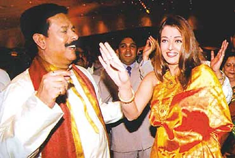 The Glitterati :Subroto Roy seems obsessed with celebrities. The weddings of his two sons in February 2004 was attended by nearly the entire Bollywood. The Roys hosted over 10,000 guests who were ferried in 200 Mercs. Orchids were imported from Thailand, and a 110-member orchestra flew down from the UK. Roy, seen here with Ash at the wedding.