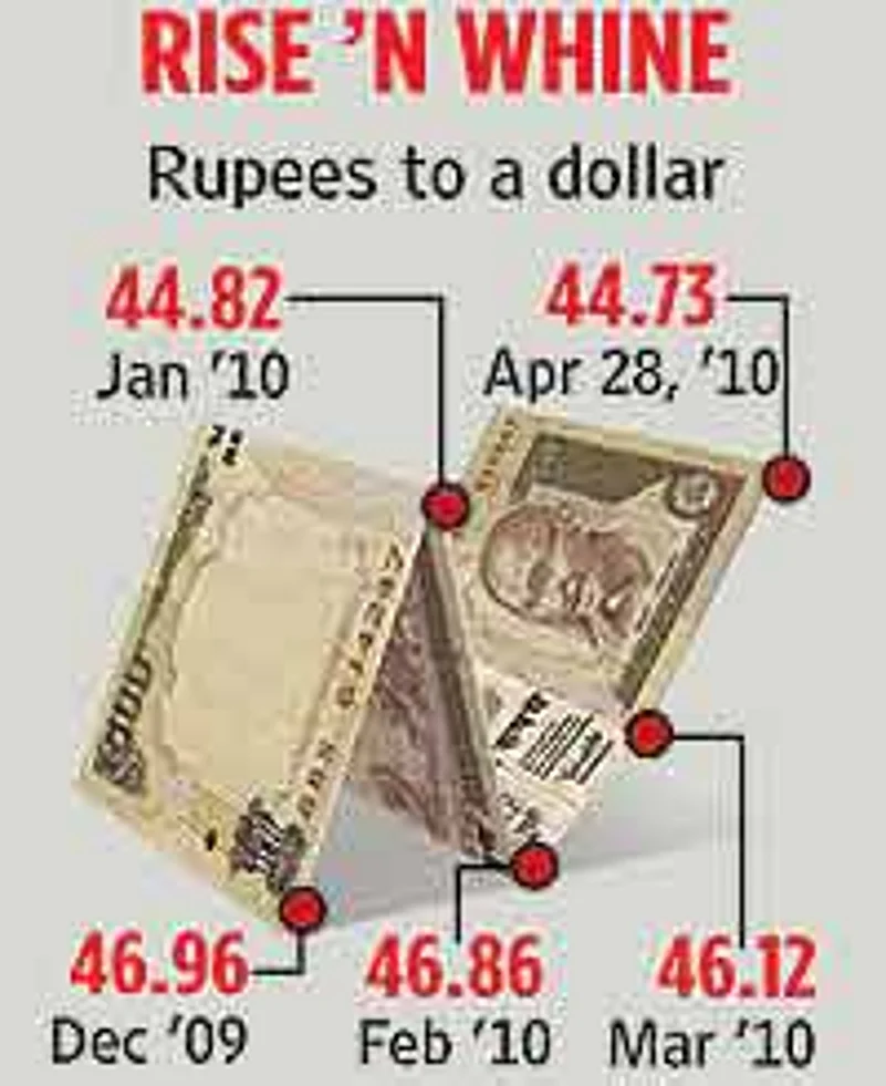 It doesn’t help that Indian exporters are unhappy—though a bit muted—particularly after a wretched 2009-10. But there’s relief from recent bad news from Europe, which seems set to reverse the upward movement of the rupee. “There is limited room for further appreciation. Instead, given the current European Union scenario, it could depreciate to Rs 45 by mid-May,” opines Vikram Murarka, chief currency strategist, Kshitij Consultancy Service. The EU’s troubles could also lower foreign fund inflows and stem the inflation-exchange rate debate.