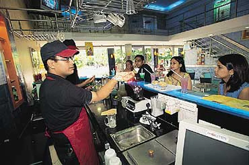 No wonder new-age juice bars are springing up everywhere. The Fruit Shop in Chennai, selling exotic concoctions made with kiwi, strawberries, cherries and litchis, has locals flocking to all its six outlets. The Health Source in Mumbai, opened just a year ago, already has plenty of juice-addicts as regulars. Amoretto's has eight outlets in Mumbai, Delhi and Calcutta with another 21 planned by December.
