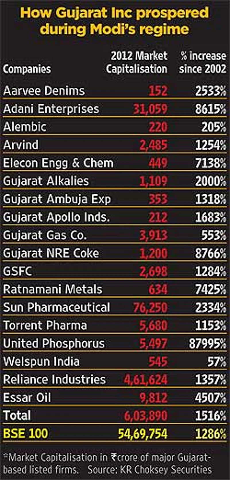 Assocham Gujarat Council chairperson Bhagyesh Soneji refutes the theory that political patronage is the reason for the spectacular growth of industry biggies like Reliance, Essar and Adani in Gujarat, saying that even if Modi hadn’t been at the helm of affairs “industries like RIL would have continued expansion in, say, Jamnagar”. At the same time, Soneji feels that “nine out of the last 10 years were a golden period for India in terms of high economic growth, so I will not give Gujarat the sole credit for the high growth (8-8.5 in 2000-01 to 11-11.5 per cent in 2011) in this period”.