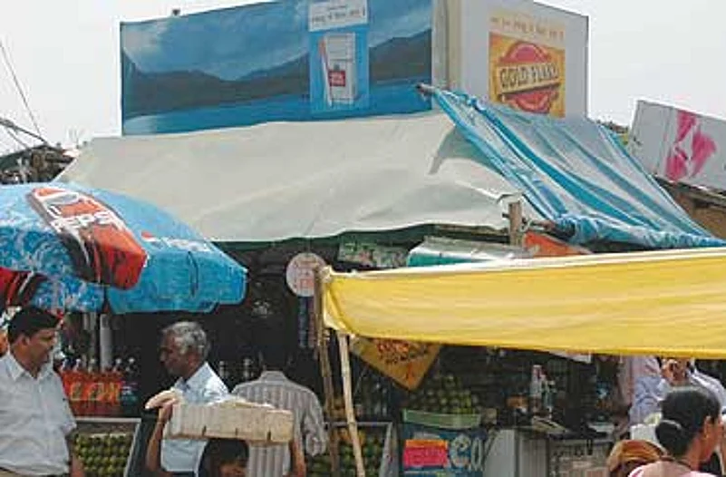 Almost all the boards or banners that you are likely to see on pan shops, especially those advertising the brands of the two leading playersITC and Godfrey Phillips India (GPI), exceed the stipulated size. This is true of both rural areas and urban cities like Delhi. "Ban! What ban? You can see more cigarette boards atop pan shops than ever before," says Kishore Mishra, a pan shop owner near Meerut. He claims thatITC pays him Rs 1,000 a month to put up the two Capstan boards over his shop. Obviously, almost all retail outlets are only too keen to flout government guidelines.