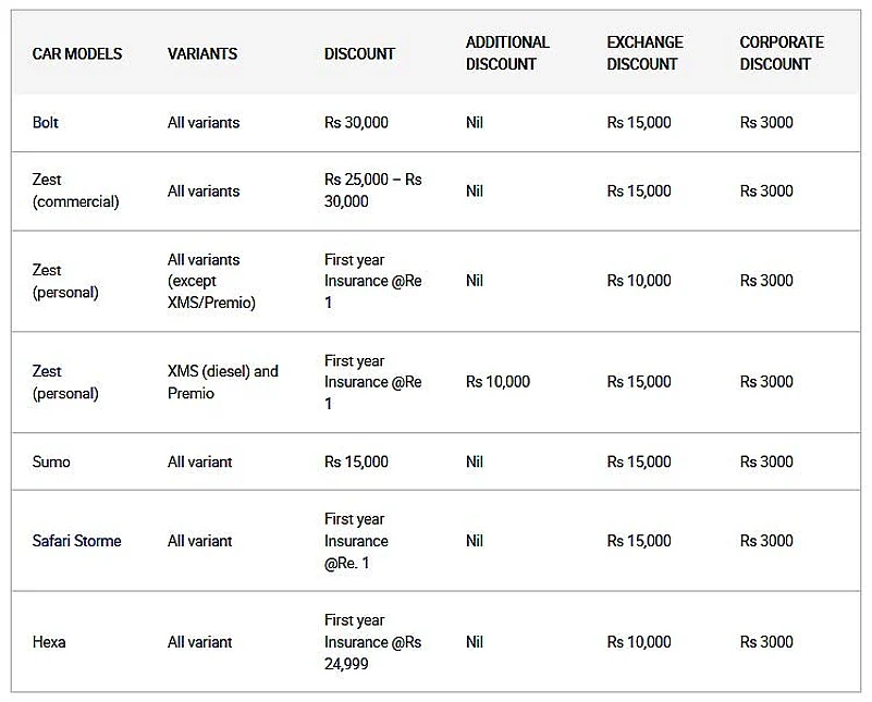 Besides offers on latest 2018 models, Tata is also offering discounts on all models manufactured in 2017, except for the Nano and the Nexon.